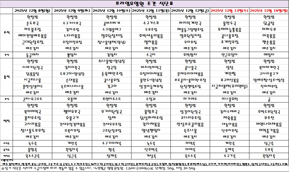 Á¦¸ñ [½Ä´ÜÇ¥] 25³â 12¿ù 2ÁÖÂ÷