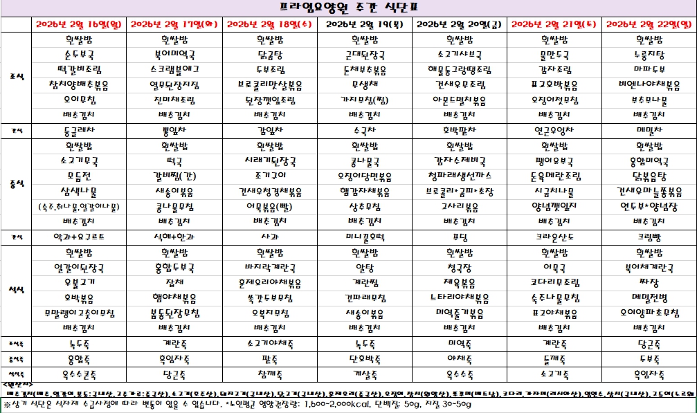 [½Ä´ÜÇ¥] 26³â 2¿ù 3ÁÖÂ÷