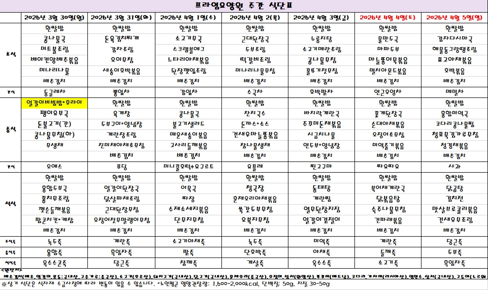 [½Ä´ÜÇ¥] 26³â 4¿ù 1ÁÖÂ÷